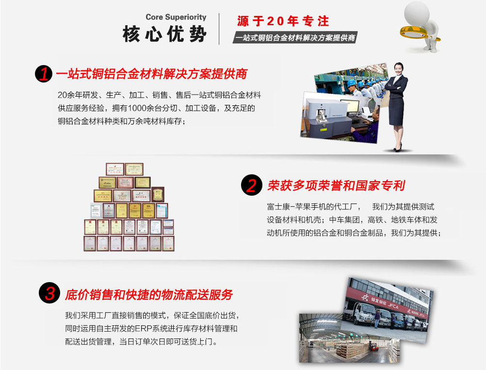 深圳市錦發(fā)銅鋁有限公司成立于1998年,注冊資金1億元人民幣,是一家國家高新技術企業(yè),榮獲廣東省著名商標稱號。總部及生產基地位于深圳寶安松崗,占地面積3萬多平方。公司成立以來,一直專注于鋁材、銅材等合金材料的研發(fā)、生產加工及銷售。倉儲上萬噸銅鋁合金材料,迅速響應客戶需求。
